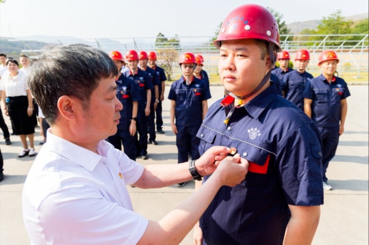 “恭喜你成為一名預備黨員,希望你再接再厲,干好本職工作,時刻以共產(chǎn)黨員的標準嚴格要求自己,在本職工作中發(fā)揮好先鋒模范作用”。攀西水工程公司黨支部書記郭家泉為新黨員況青泉佩戴黨徽,鞭策新黨員不忘初心、牢記使命,自覺履行黨員義務,聽黨話、感黨恩、跟黨走,全心全意為人民服務,矢志不渝為黨奮斗。